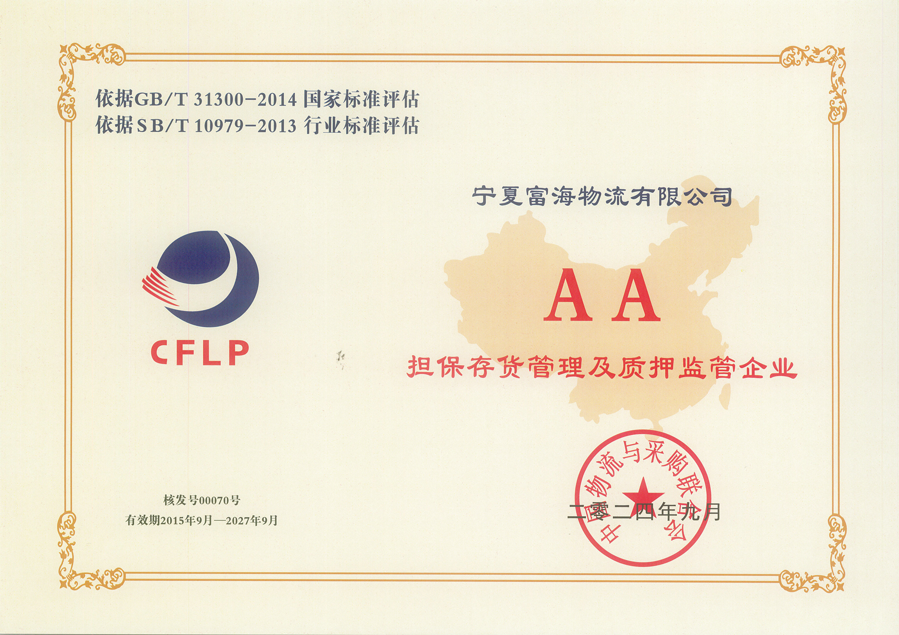 公司經過十余年的不斷努力及創新,現已發展成為寧夏回族自治區重點物流企業,先后被評定為國家4A級物流企業、2A級擔保存貨管理及質押監管企業、全國第二批多式聯運示范項目試點企業、中國西部物流百強企業、石嘴山市重合同守信用單位、自治區級商貿物流集散中心。同時多式聯運事業部鐵路線班組榮獲全國“工人先鋒號”稱號、“富海物流司機之家”被列入中華全國總工會“提升職工生活品質試點單位”。